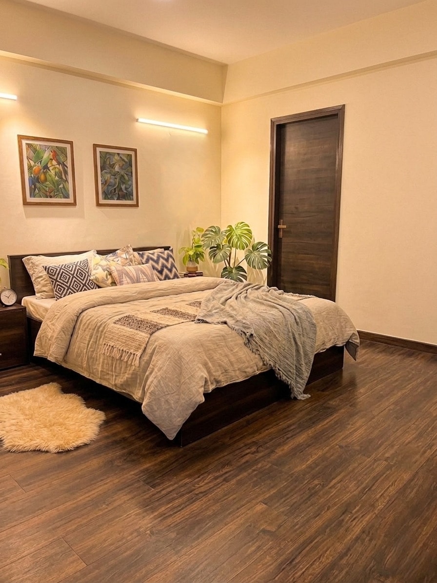 A 2BHK concept with Dehradun-Mussorie valley view, kept it for Workation ready with mountain and Doon-valley view. This Dehradun Mussorie home offers quiet premium and everyday comfort. Suggested stay in Dehradun-Mussorie Premium & thoughtfully curated furnishing layout create a space that feels both refined and welcoming. We dressed up this home in trendy way, ideal for guests who value privacy, comfort, simplicity and perfection. Designed in warm beige tones with a calm, minimal aesthetic.