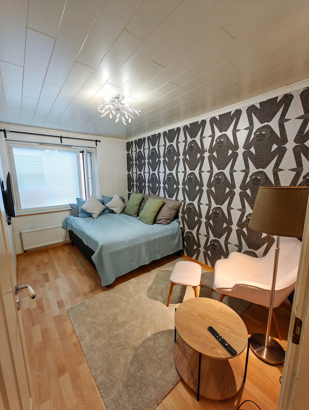 Um quarto grande e alto numa casa de 101 anos, mesmo no centro de Helsínquia, ao lado da Igreja Temppeliaukio. Entrada privada, cama de casal confortável de 160 cm de largura, ar condicionado, casa de banho privativa, Wi-Fi gratuito, pequena estação de trabalho - e a Xbox Series X está à sua espera para passar a noite. Cafés, museus, o Estádio Olímpico, a praia de Hietsu e os parques infantis estão a uma curta distância a pé. Perfeito para casais, famílias pequenas, apreciadores de comida e viajantes de negócios.