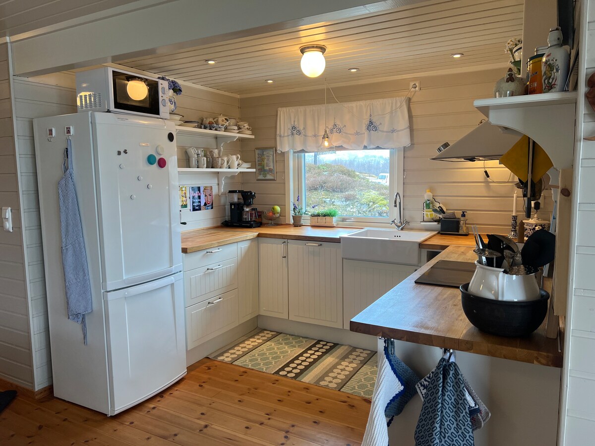 Bem-vindo à nossa encantadora casa de campo, construída no estilo clássico de Lofoten, inspirada nas casas de madeira tradicionais do norte da Noruega. Aqui tem uma combinação perfeita de charme costeiro rústico e conforto moderno, ideal como base para experiências na natureza, diversão em família ou apenas relaxamento total num ambiente bonito. A cabana tem 3 quartos e muito espaço para 6 adultos. Além disso, há uma cama de viagem para crianças pequenas e um sofá-cama que é adequado para crianças ou adolescentes.
