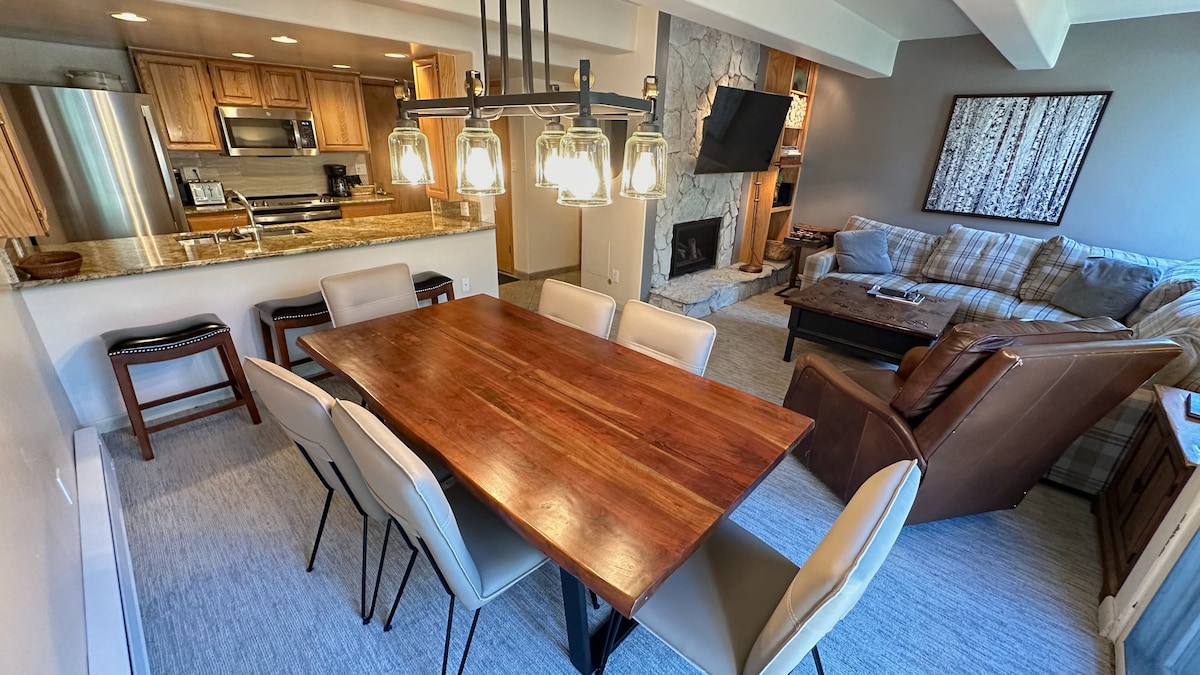 Welcome to Breck Peak Retreat, our top rated & fully renovated 2 bed, 2 bath condo in a prime location! Just a 5-minute walk to the Peak 9 lifts & Historic Main Street, it’s perfectly situated for skiing, snowmobiling, hiking, & all year-round adventures. After a day out, unwind in one of four hot tubs or heated pool just steps away! The updated kitchen makes cooking easy, or grab takeout from nearby spots! With two parking spaces & modern amenities, this is your ultimate mountain retreat!