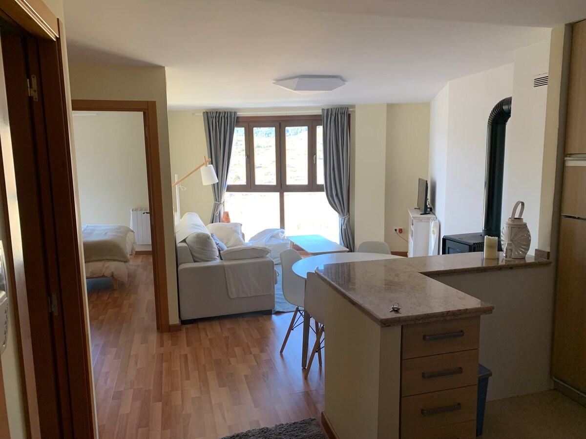 Apartamento novo e acolhedor com um quarto a 5 minutos de carro da estância de esqui de Valdelinares. Um lugar de estacionamento dentro do edifício está incluído no preço, bem como um cacifo de esqui dedicado. O quarto possui uma cama de casal confortável e a sala de estar com vidro oferece vistas deslumbrantes para a montanha, um sofá-cama duplo e uma lareira quente. Uma varanda com uma mesa de jantar permite desfrutar de refeições ao ar livre. Valdelinares, a aldeia mais alta de Espanha está à sua espera!