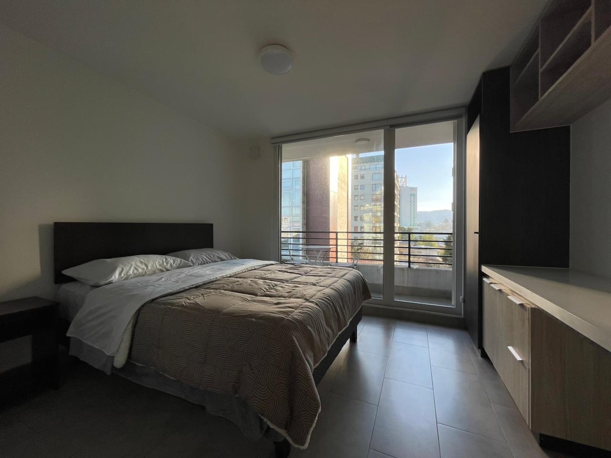 Apartamento tipo estúdio central para 2 pessoas, projetado para oferecer conforto a quem deseja explorar os encantos de Valdivia, o edifício fica perto dos melhores bares e restaurantes da cidade, onde você pode ir a pé. CARACTERÍSTICAS: - Fica a poucos minutos a pé do centro. -Banheiro equipado com toalhas para duas pessoas. -Cozinha com elementos básicos para cozinha expressa. -Transporte até a porta do prédio. -Wi-Fi próprio do apartamento. *Não tem estacionamento próprio.