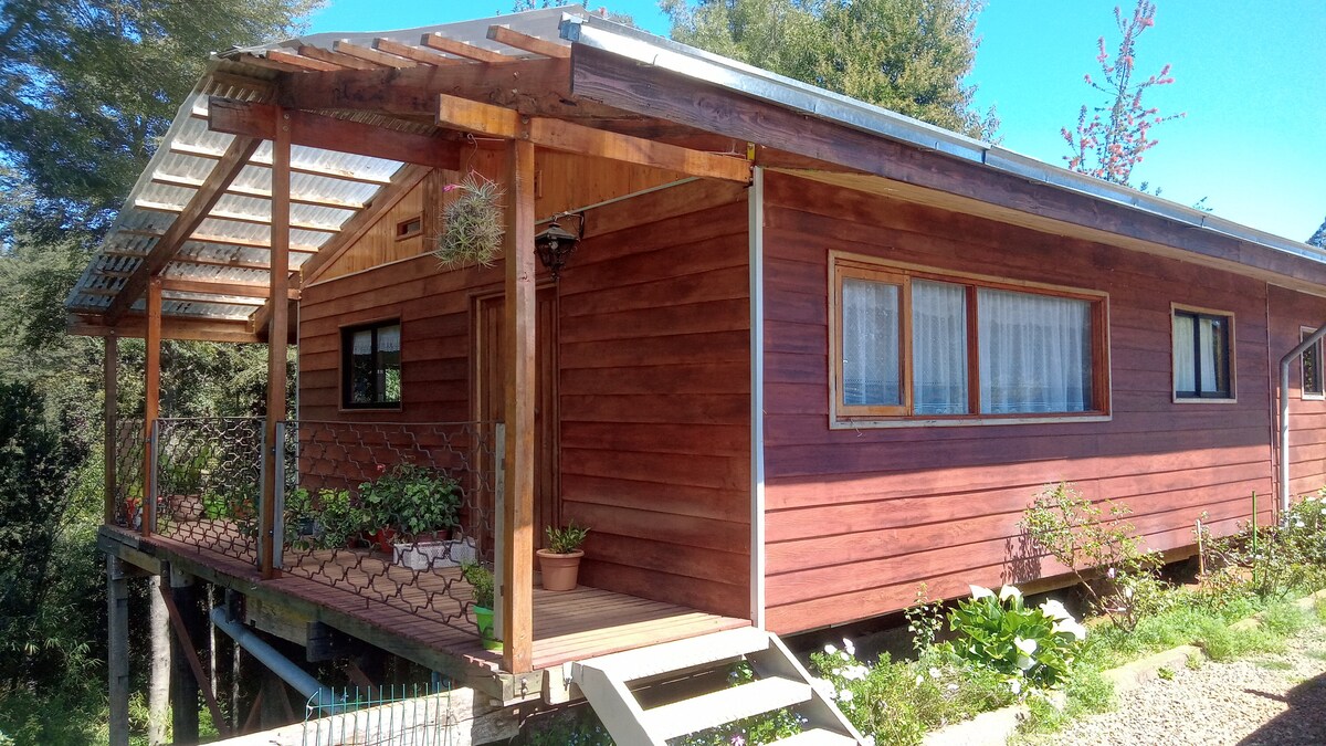 Cabana moderna num ambiente natural, cinco mil m2 de relva, um riacho, 2 grandes salgueiros de sombra agradável e uma pequena floresta de coihues e carvalhos. A casa tem uma sala de estar-jantar e cozinha integrada, 2 quartos, cada um com uma casa de banho privativa, cozinha de combustão lenta, janelas panorâmicas. Localizado no auge do Km 13 da estrada Villarrica Pucón, a 500 metros desta, muito perto das principais atrações da área.