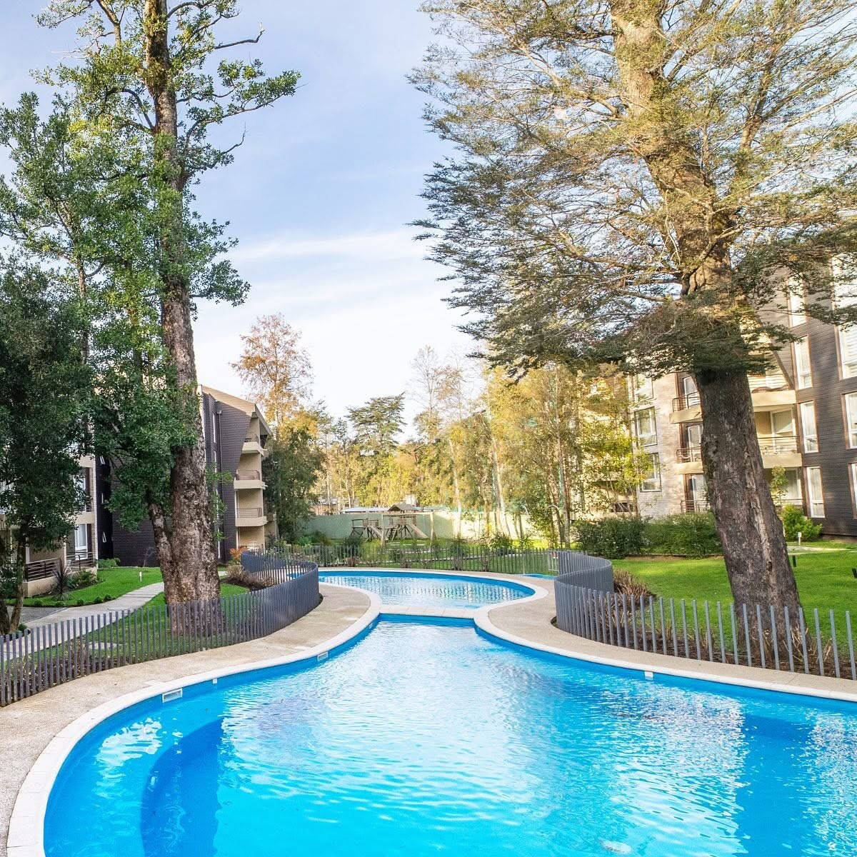 Relaxe num lugar com belas áreas verdes, a caminho do vulcão km 1, perto do centro de sky e do centro de pucon. Apartamento totalmente equipado, 1 quarto com uma cama king. Sala de estar com sofá-cama para 2 crianças, aquecimento, TV com Wi-Fi, estacionamento, terraço e piscina. Clube : Jogos eletrónicos para crianças Ginásio, bicicletas (grátis). tinajas, quincho (custo extra) Lavandaria (máquina de lavar e secar roupa) custo adicional (500 pesos em moedas). Concierge 24 horas por dia, 7 dias por