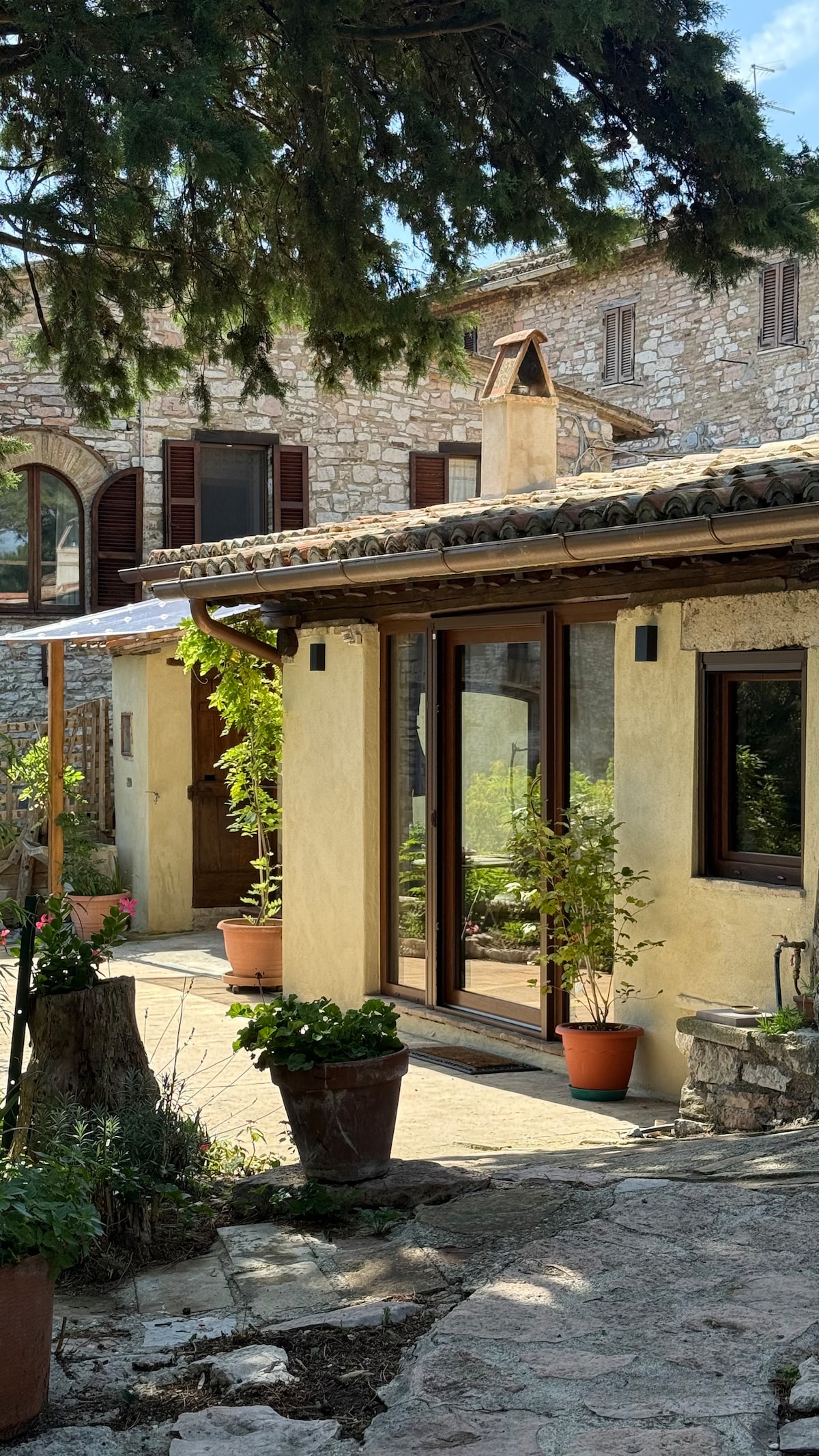 Situado no último andar de uma antiga casa de família no centro histórico de Assis, a uma curta distância da magnífica Basílica de São Francisco, "Assisi Al Quattro" é um refúgio de silêncio e regeneração, cheio da fragrância de ervas medicinais no verão: não pude deixar de me apaixonar por ele. As vistas deslumbrantes do grande terraço são verdadeiramente únicas, e é vale a pena uma visita só para experimentar. Todos são bem-vindos.