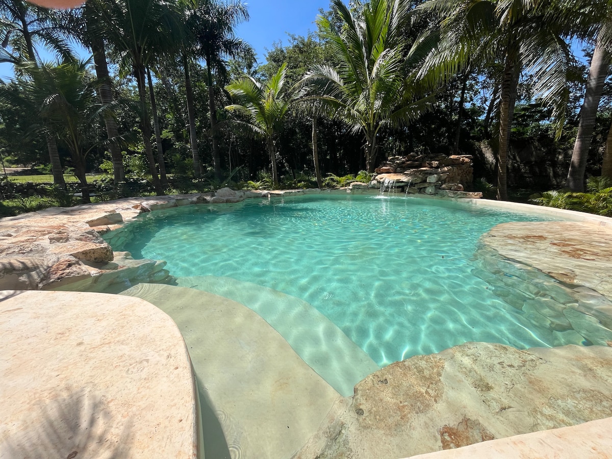 Descubra o nosso elegante alojamento ecológico, perfeitamente localizado nos arredores de Valladolid, em Yucatán, que oferece fácil acesso a destinos imperdíveis. Desfrute de novos quartos espaçosos com ar condicionado, Wi-Fi, portas USB e camas Posturepedic. Explore os amplos jardins cheios de árvores de fruto e pássaros vibrantes. A nossa propriedade fica a apenas 6 minutos de carro de Valladolid e o alojamento está protegido com portões e paredes, garantindo privacidade e segurança para a sua estadia. Reserve a sua estadia para uma experiência verdadeiramente inesquecível.