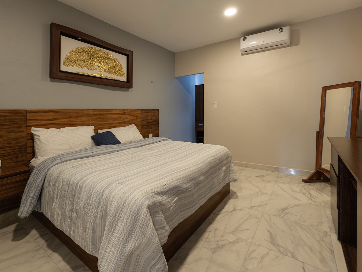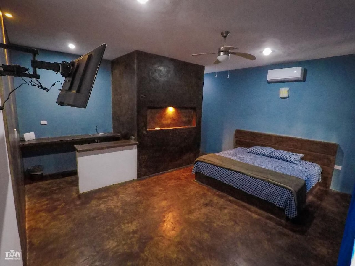 Espaçoso e confortável para viver uma experiência "KIIN WAYEB" Os nossos quartos mais exclusivos foram concebidos para lhe oferecer uma experiência inesquecível, onde o conforto e o luxo se fundem com o charme da cultura iucateca. Estes quartos estão equipados com duas camas de casal confortáveis, onde pode descansar e acordar renovado, secretária, Smart TV, ar condicionado, água quente e uma rede para descansar à tarde no estilo clássico de Yucatec.
