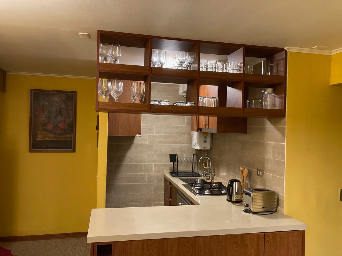 Confortável apartamento em Nevados de Chillán, cozinha recentemente reformada, banheiro, janelas recentemente trocadas por painéis térmicos e cortinas com blackout, bem equipado, aquecimento central, com exposição ao norte e terraço ensolarado com boa churrasqueira FDV, localizado a 100 metros do teleférico e do Hotel Nevados de Chillán, você pode chegar ao apartamento esquiando no inverno e tem estacionamento subterrâneo.