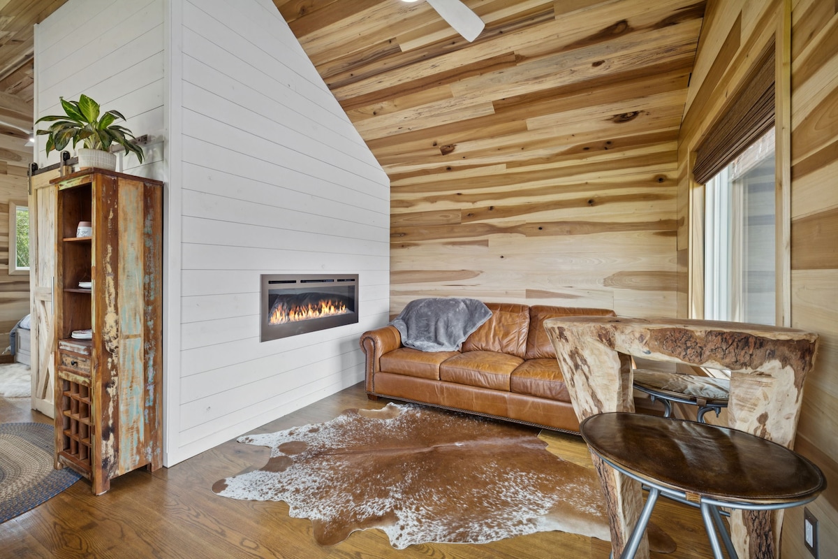 Cottage by the Creek é um celeiro de grãos convertido de 600 pés quadrados construído no início dos anos 1900. Convertemos o espaço em um quarto leve e iluminado, com um loft. Há uma cozinha totalmente funcional e banheiro personalizado com chuveiro de azulejos. A varanda da frente de 30 pés oferece vistas para a fazenda de gado do outro lado da rua e o riacho que flui durante todo o ano. Ou desfrute do pátio traseiro com água quente e lareira.