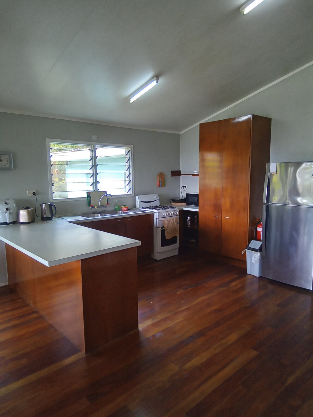 Situated directly in front of the very best snorkel and white sandy beach in the area. Cooking staff optional and full serviced. The is a typical family home. Open plan layout with kitchen dinning lounge in one large area with the covered deck.