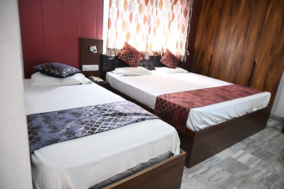 A sua estadia no Somnath Palace é totalmente supervisionada pela Gestão e Apoio Online da EgardenStay, garantindo uma experiência tranquila, fiável e confortável desde o check-in ao check-out. Este Duplo Deluxe é simples, elegante e ideal para uma estadia tranquila perto do Mercado Luxa. ♦️Alojamento apenas para famílias — não permitimos estadias de casais ou solteiros.