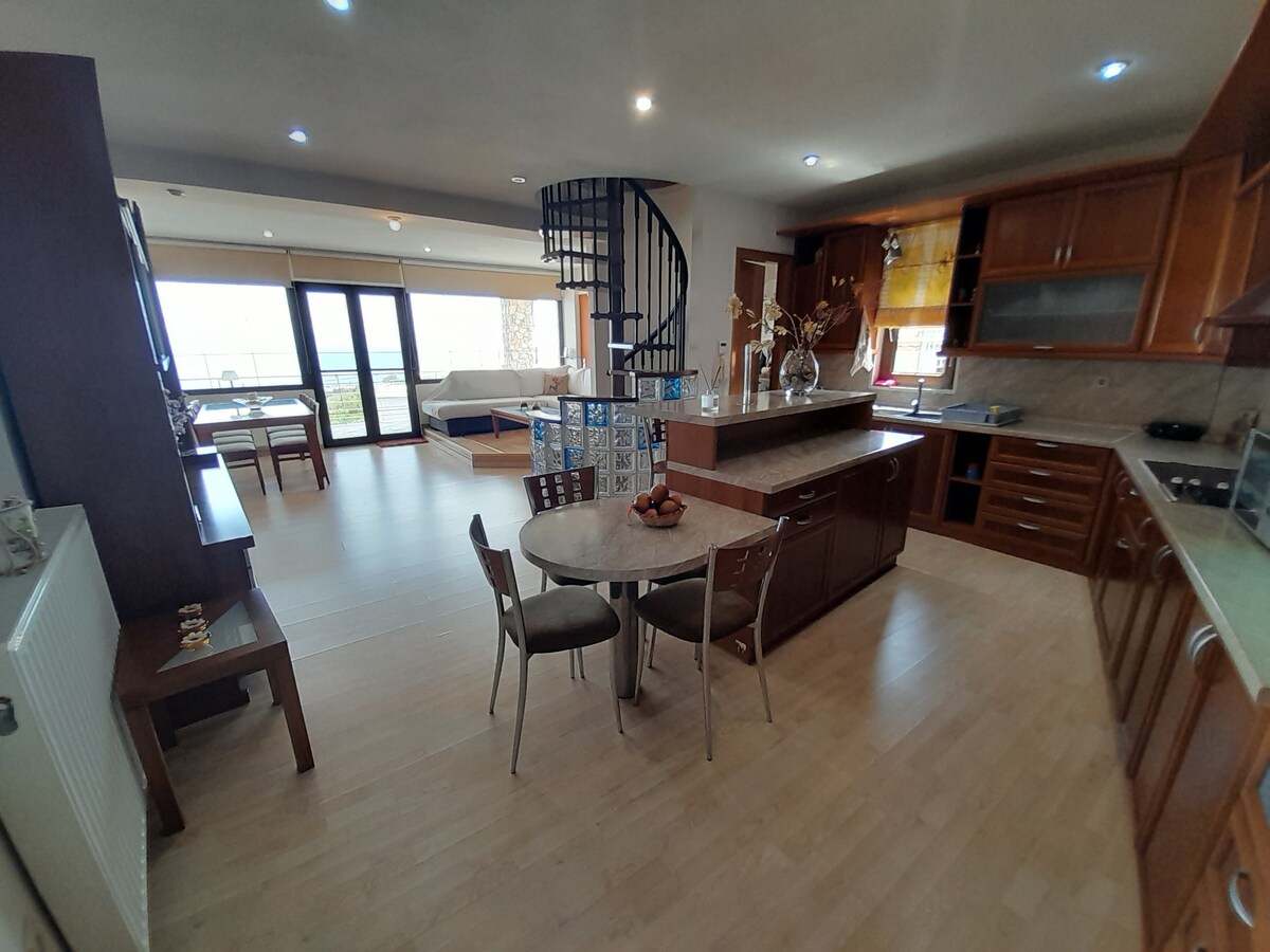 Fully renovated apartment with a wonderful view and a unique sunrise qt the most picturesque area of Mytilini. The appartment is almost 100 square meters and it can accommodate from 2 to 6 people. It has all the specifications for a comfortable stay for all family. Have fun with your family in this stylish space.