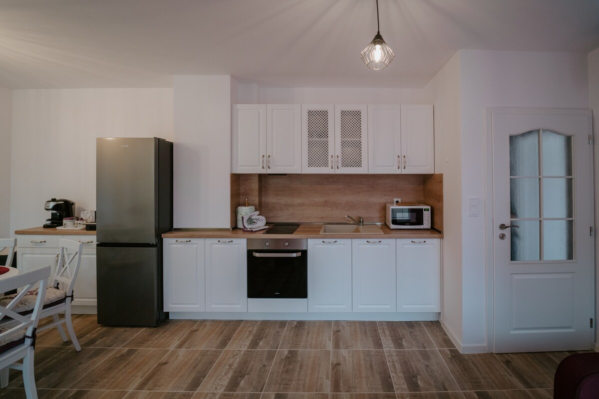 Bem-vindo ao nosso apartamento acolhedor em um bairro tranquilo e pacífico a poucos minutos do centro da cidade. Se você está procurando férias completas em uma localização conveniente, nosso espaço é perfeito para você. O apartamento oferece um quarto confortável, uma espaçosa sala de estar, uma cozinha totalmente equipada e um banheiro moderno. Cuidamos de todos os detalhes para você se sentir em casa. Desde o uso da Internet sem fio até a disponibilidade de ar condicionado, garantimos o seu conforto.
