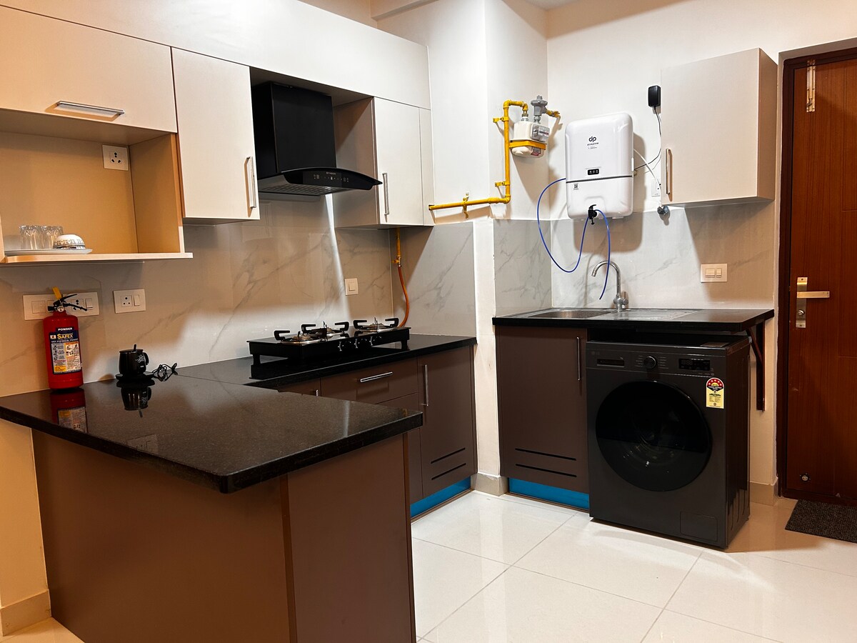 Nestled in the heart of Whitefield, surrounded by lush greenery, our premium 1 BHK apartments are meticulously designed to offer high-quality stay experience and extreme comfort. We have used wakefit 10" memory foam mattresses in bed room and amoeba sofa cum bed in the hall, to offer ultimate sleep quality and back support. We designed our kitchen spaces with modern kitchen utensils - including mini bar set. Other amenities include 100 Mbps WIFI, proximity to the Metro station, and IT hubs.