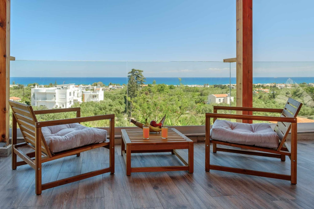 Parte do complexo Alectrona Living, Creta. Um novo apartamento luxuoso bem na beira da colina de Platanias, perto do centro de Platanias, mas longe das multidões e do barulho da rua principal. A vista é de tirar o fôlego, o som das ondas e as cores de cada pôr do sol vão recarregar suas baterias e relaxar sua mente. Um dos destaques de ficar aqui é a piscina comunitária, que oferece vistas deslumbrantes para o Mar Egeu