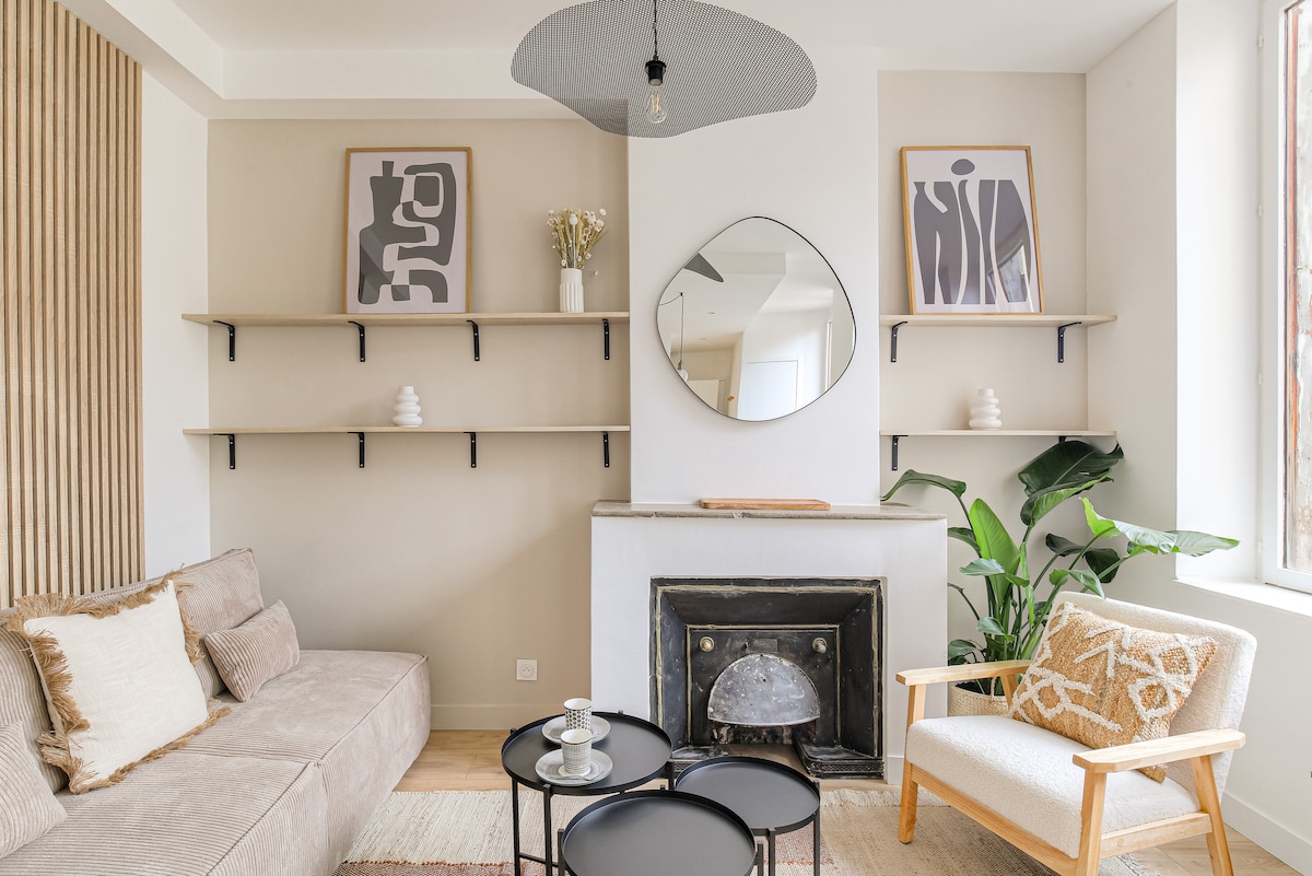 Vai adorar ficar neste belo apartamento hausmanniano, completamente renovado com bom gosto por um decorador, no coração do bairro de Bellecombe, o metro Brotteaux. É composto por uma entrada, numa cozinha de designer totalmente equipada, numa sala de estar com lareira de mármore, área de trabalho e cama de casal, casa de banho com máquina de lavar roupa e sanita separada. Este apartamento claro e tranquilo em Lyon 6, com design elegante, fica perto de Les Brotteaux, do Parc de la tête d 'or e da estação ferroviária de Part-Dieu.✨