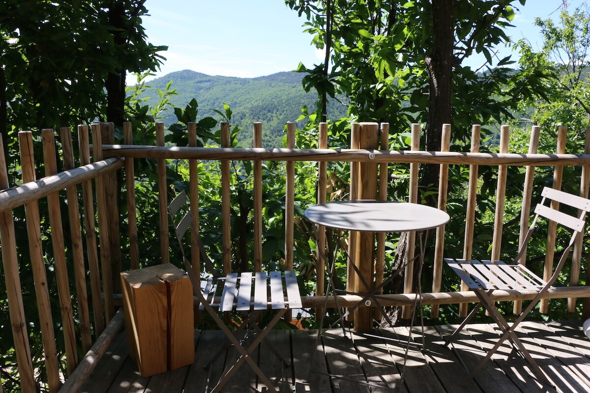 Um retiro feliz e tranquilo e bonito. A casa de campo renovada é uma pequena casa de 2 andares perfeita para 2 pessoas, numa magnífica propriedade de 94 hectares de floresta de castanhas, experiência sublime para os amantes da natureza, que querem fugir da agitação, trilhos maravilhosos para caminhadas, vistas magníficas. Piscina pequena natural na propriedade, mas há um ponto de natação sublime a 9 km. Quarto e aquecedor de madeira no andar de cima, casa de banho, sanita separada e cozinha aberta no andar de baixo. Terraço privado.