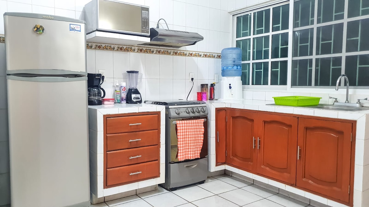 Suíte localizada no último andar, em um conjunto de 6 SUÍTES independentes, localizado a meio quarteirão da Av. Juan Pablo ll, perto do Centro Esportivo Leyes de Reforma, Estádios Beto Avila e Luis Pirata Fuentes. Aprox. 14 km do centro da cidade. Na colônia REVOLUÇÃO. A Avenida Juan Pablo II atravessa a cidade do mar até a Avenida Prol. Diaz Miron. Sobre a Av. Juan Pablo ll, há transporte público e táxis. Estamos a 4 quarteirões do shopping center Urban Center.