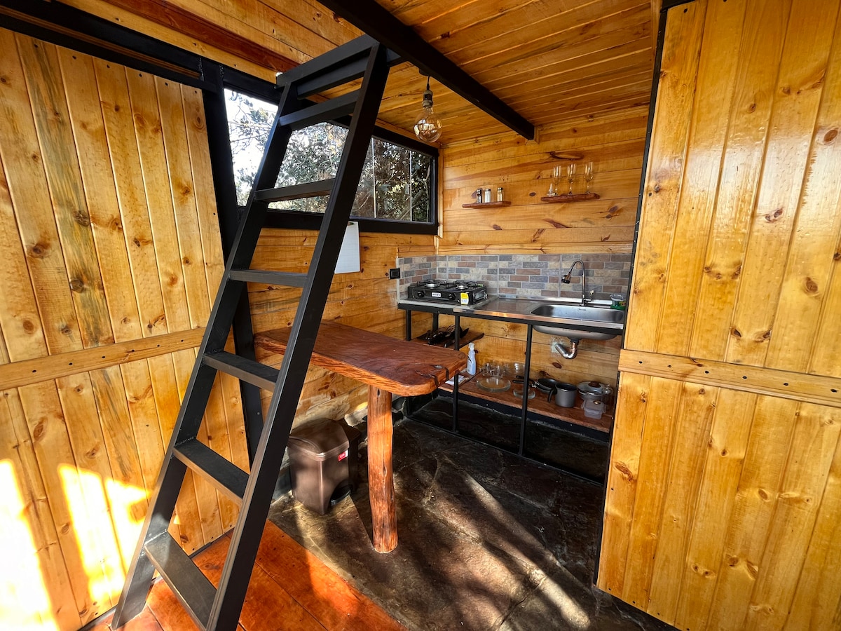 Relaxe na sua cabana.terra localizada no "paraíso", este é um lugar concebido para se desligar da rotina e desfrutar da natureza. Estará rodeado por montanhas, belas paisagens e trilhos incríveis. A cabana tem dois andares. No primeiro andar o equipamento de cozinha com os utensílios necessários para a sua estadia, uma casa de banho privativa com chuveiro quente e sofá-cama; no segundo andar, uma cama de casal e uma varanda. Neste belo espaço também pode trabalhar remotamente com Wi-Fi.