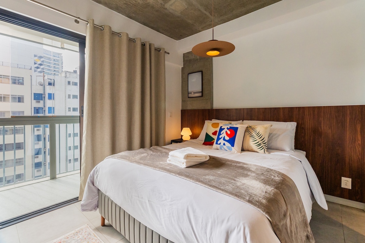 Studio Moderno Completo A apenas 2 quarteirões do Shopping Frei Caneca e 500 metros da estação Mackenzie-Higienópolis, este estúdio oferece conforto e praticidade. • Ar-Condicionado • Wi-Fi 250mb • Smart TV • Máquina lava e seca (uso gratuito) • Mesa de trabalho e cadeira confortável • Toalhas e roupas de cama inclusas • Cozinha completa: micro-ondas, cafeteira, forno e fogão • Ferro de passar e secador de cabelo Ideal para estadias curtas ou longas, próximo à Avenida Paulista.