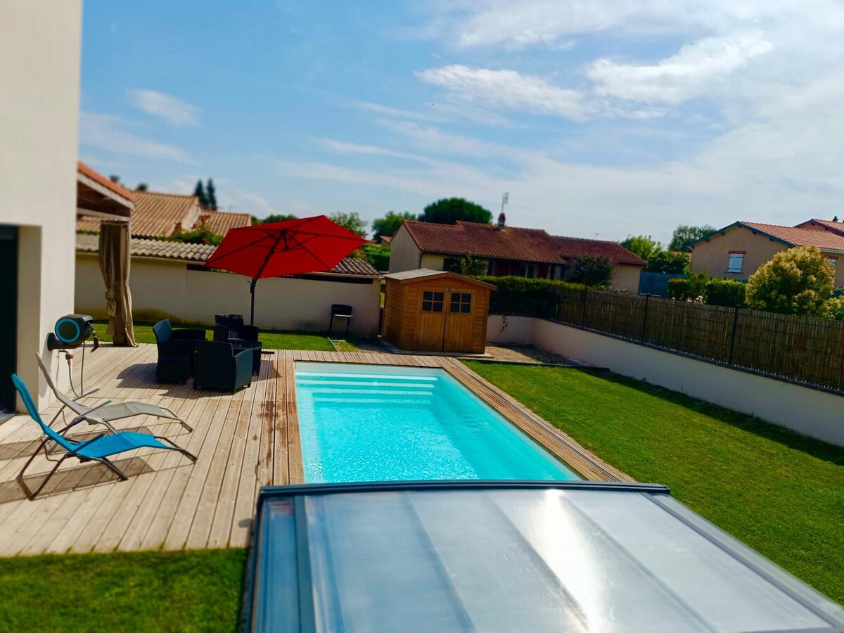 Moradia encantadora de 60m2 ideal com acesso à piscina e terraço exterior a apenas 20 minutos de Toulouse. Ideal para uma família de 2 adultos e 2 ou 3 crianças. Esta casa também pode acomodar confortavelmente 4 adultos. Como casal, irá desfrutar de um espaço generoso e agradável. Estacionamento privado gratuito, lojas, restaurantes nas proximidades. Fornecemos toalhas e roupa de cama.