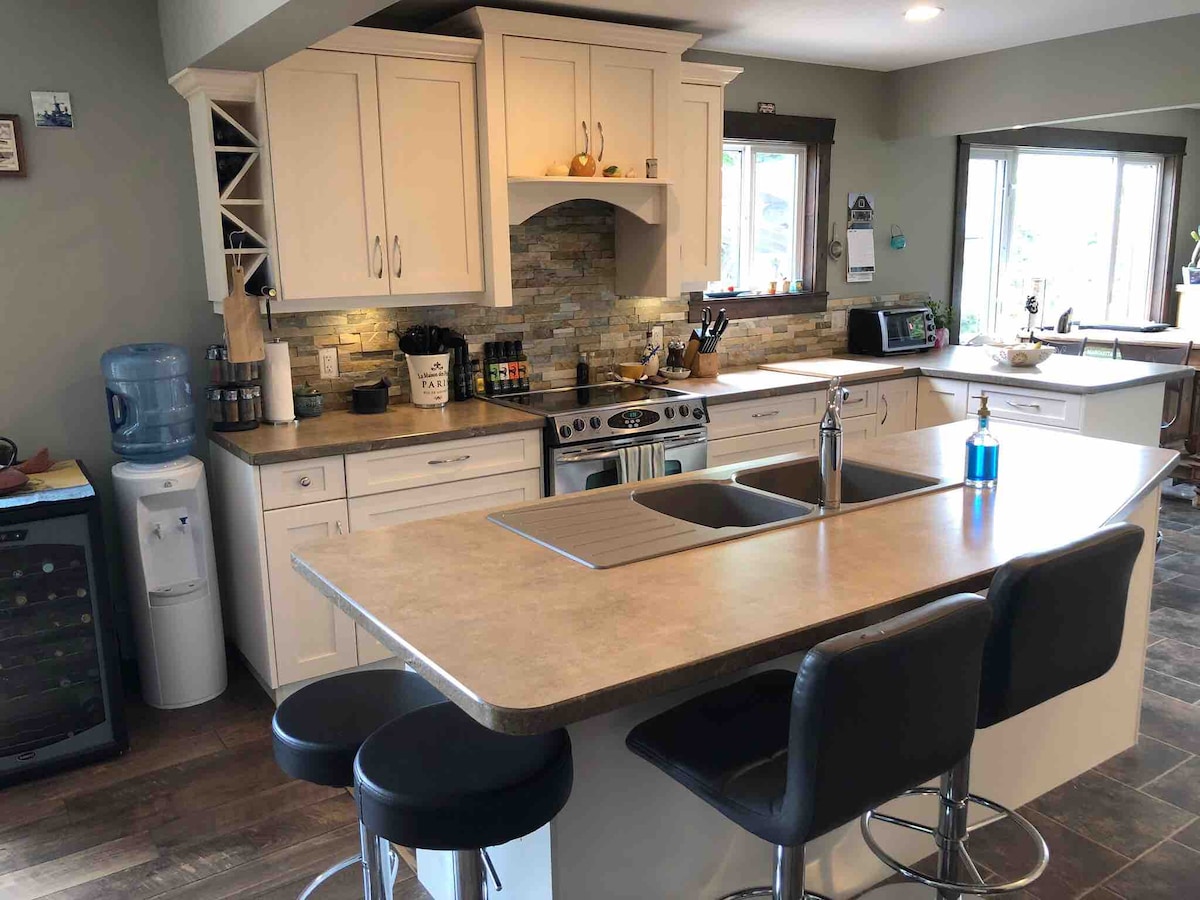 Localizado na pacata Upper Mission de Kelowna, a apenas 3 minutos da Adega Summerhill e a 20 minutos do centro da cidade. Desfrute de uma suite privada com vista para o lago e entrada separada, exclusivamente para o seu grupo (sem áreas partilhadas). Oferece 2 quartos com camas queen, uma nova casa de banho e uma espaçosa sala de estar com televisão, sofá-cama e mesa de jantar. Sem cozinha completa: micro-ondas, frigorífico e máquina de café fornecidos (sem fogão/máquina de lavar louça). Ao ar livre: banheira de hidromassagem, churrasqueira e deslumbrantes pores-do-sol no lago. Horário de silêncio após as 22h.
