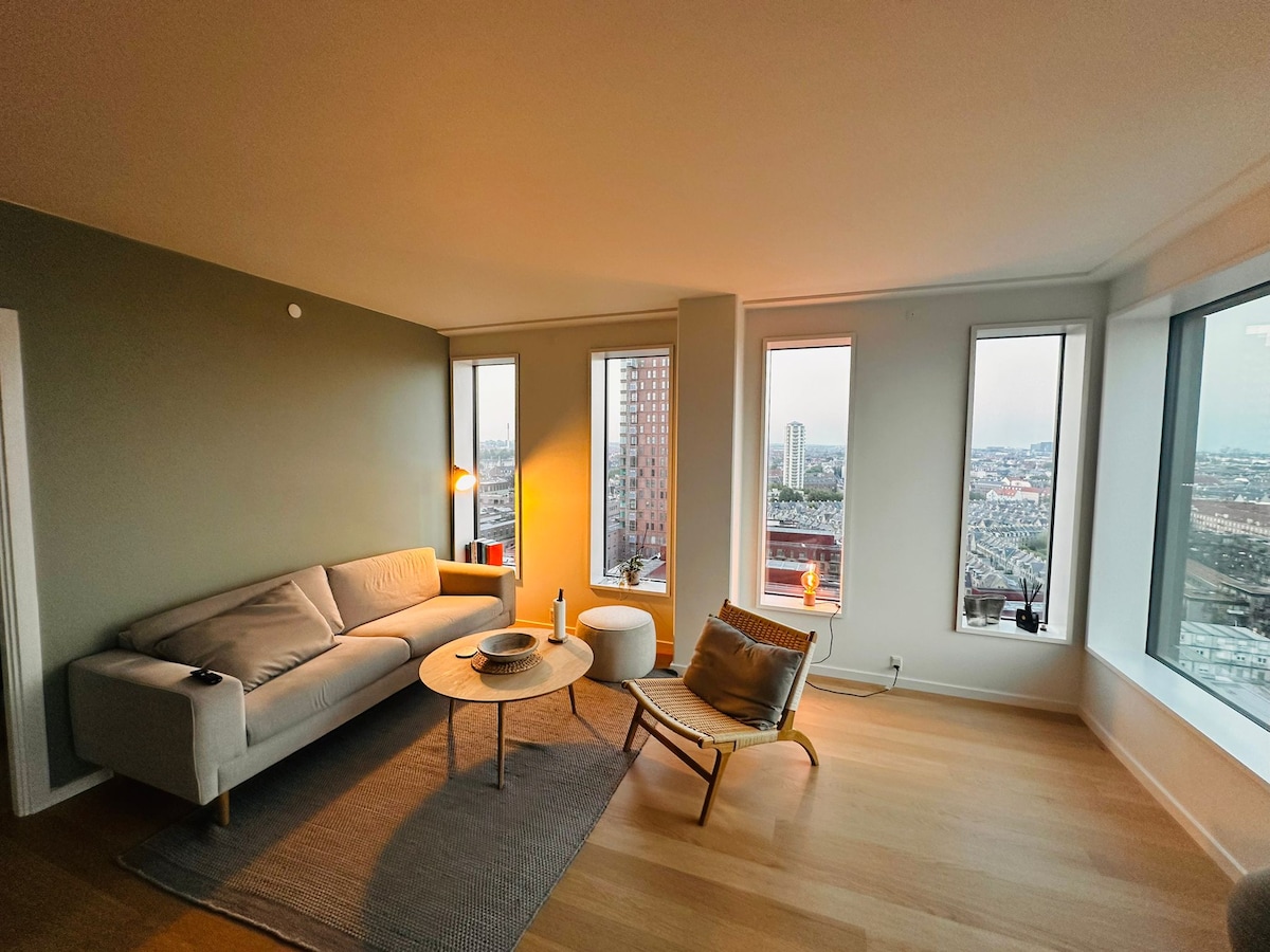 This newly built apartment has a contemporary nordic design and is ideally located in the historic Carlsberg district. Situated on the 10th floor, the apartment is filled with natural light and offers panoramic views across the city skyline and the eastern sea. Offers privacy and tranquility, creating a peaceful retreat above the city. Just outside, the surrounding streets offer an excellent selection of charming local restaurants, cafés, boutiques, as well as beautiful parks and playgrounds.