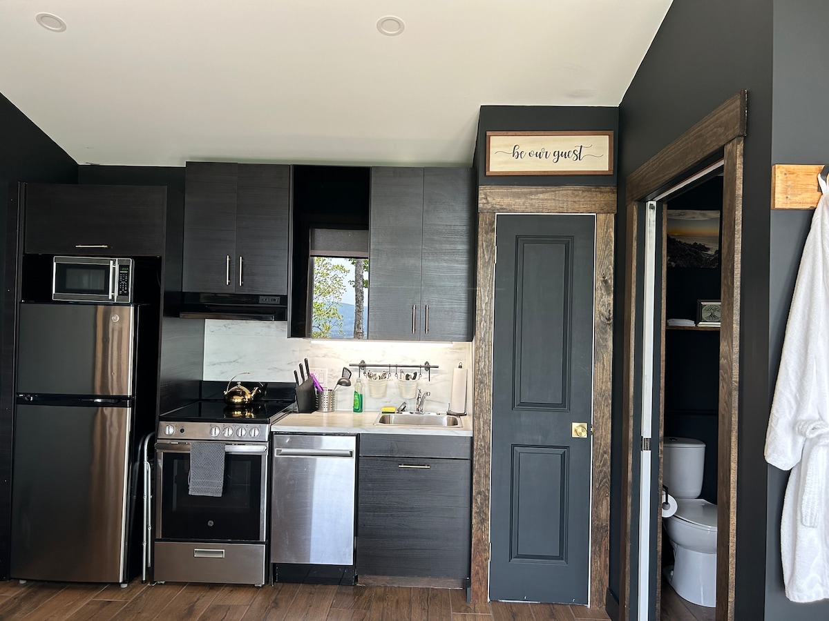Tio Bud passou seus dias mais jovens trabalhando nas florestas de Margaree, e seus dias mais velhos entretendo seus moradores. Este chalé para 2 pessoas com o nome dele é perfeito para uma viagem de casais! Aninhado entre as madeiras, possui uma banheira de hidromassagem para duas pessoas, situada abaixo de uma lareira elétrica de 6 pés. Cozinha e cama king size A cozinha e a sala de jantar no Chalé Bud incluem uma geladeira, fogão de quatro bocas, itens essenciais de cozinha, cafeteira, micro-ondas e máquina de lavar louça. O espaço de jantar também inclui uma mesa para dois, uma lareira elétrica, TV SMART via satélite e Wi-Fi gratuito. Banheira de hidromassagem O Chalet 4 vem com sua própria banheira de hidromassagem de 6 jatos.