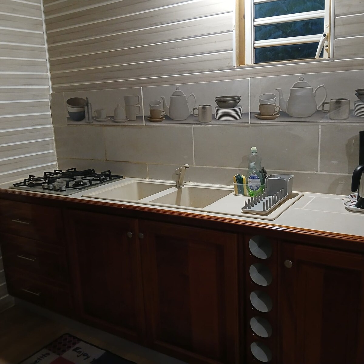 🍍Bem-vindo ao Zabitant Lodge! Quarto grande com cama de casal e sofá-cama, casa de banho com chuveiro de entrada, TV e vestiário. Galeria ao ar livre com kitchenette, área de refeições e espaço relaxante. Várias praias nas proximidades, incluindo uma a apenas 5 minutos a pé Perto da aldeia. Lugar ideal para recarregar as baterias e desfrutar do charme de Guadalupe 🏝️