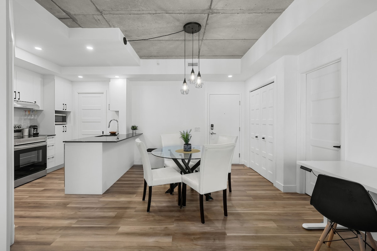 Venha desfrutar de uma estadia inesquecível no coração do bairro de Saint-Roch, na cidade de Quebec. Este apartamento moderno e luxuoso irá encantá-lo tanto pelos seus espaços comuns como pelo seu design interior. Estacionamento ✧️ interno incluído ✧️ Terraço com piscina, área de refeições e lareira ao ar livre ✧️ Churrasqueira disponível o ano todo no terraço. Sala de✧️ fitness Apartamento ✧️ luminoso e agradável Wi-Fi ✧️ rápido e espaço de trabalho ✧️ Apenas 15 minutos a pé da Quebec Velha