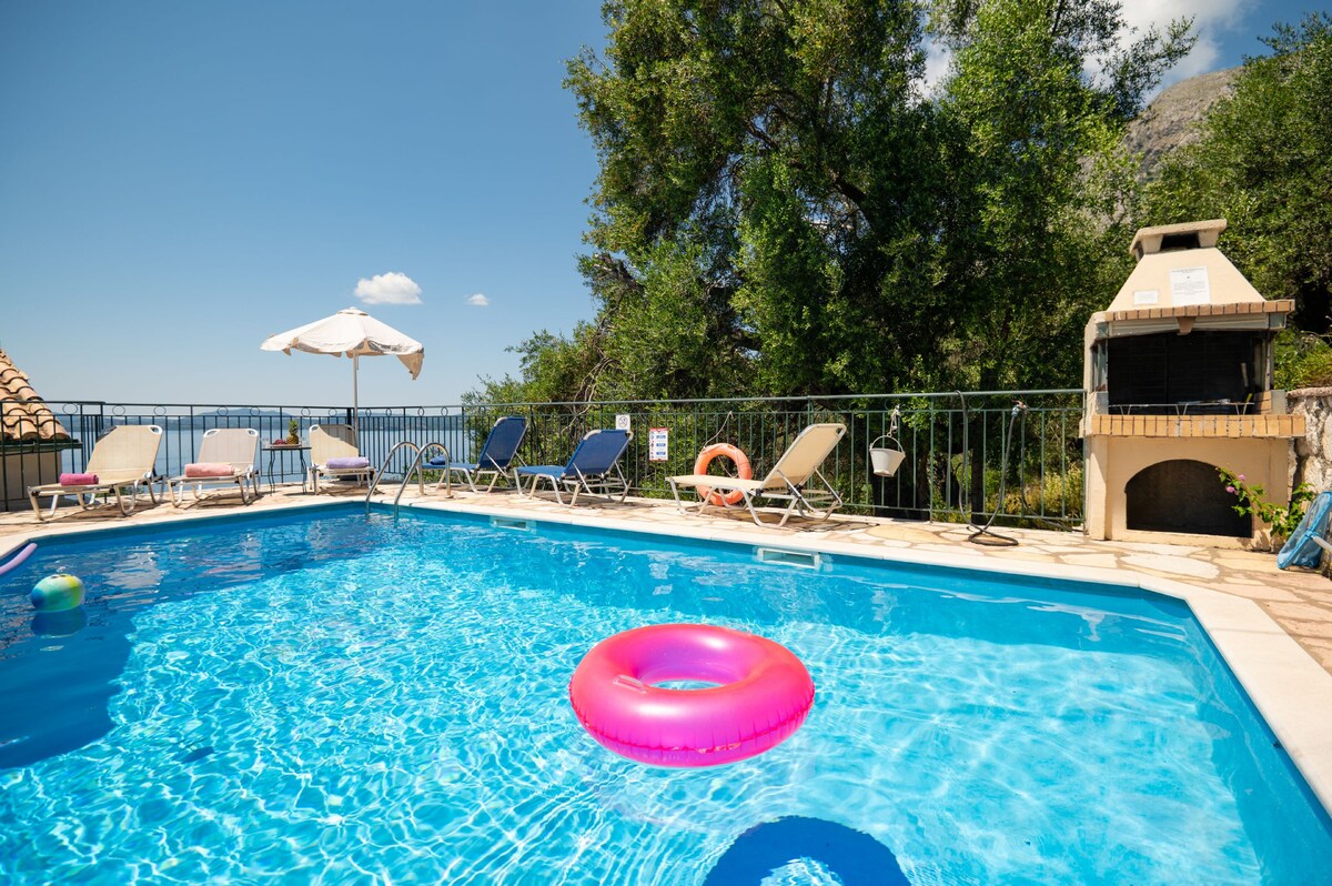 Vila Lithari: vista para o mar e a montanha junto à piscina