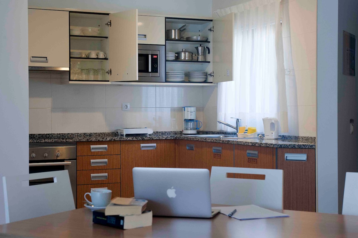 Capacidade máxima de 4 pessoas. 65 m2 úteis. - Quarto com 1 cama 150x190 cm ou 135x190 cm - Sofá cama na Sala - Casa de Banho - Banheira e Duche - 2 Varandas o terraços - Primeiro andar ou resto chão, mediante disponibilidade - Aceitamos animais de estimação dependendo da disponibilidade/petição e há um custo adicional de 10,00€ por animal/noite. - Uma limpeza durante a estadia tem um custo adicional de 20,00€ - Carregar o carro tem um custo de 0,35€ por kWh