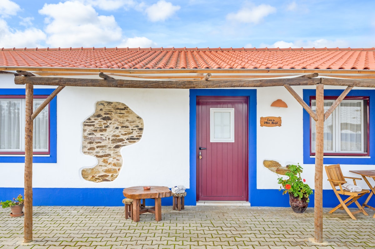 Com a nossa aconchegante cabana de madeira, você vai se sentir como em uma casa na árvore. Sombreado por sobreiros, pode desfrutar da atmosfera serena do convés ou no nosso salão ao ar livre, onde lhe serviremos um delicioso pequeno-almoço (produtos locais, de alta qualidade/orgânicos). Tudo aqui foi feito por nós, com amor e 99,9% de materiais naturais para que você possa desfrutar de paz e tranquilidade. Estamos em uma localização tranquila, mas muito conveniente, a 20 minutos das belas praias de Vilanova de Milfontes.