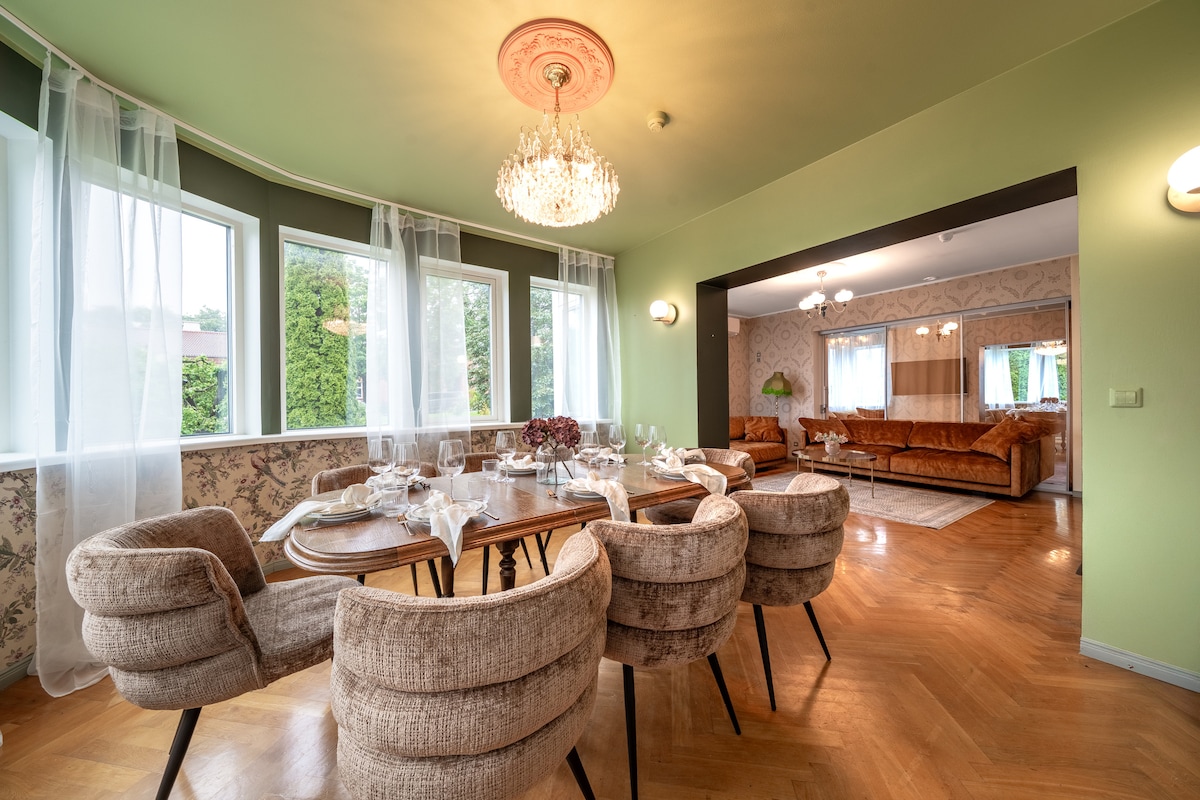 Fique numa das casas mais distintas de Viljandi, mesmo em frente à escola do centro da cidade, numa casa histórica construída em 1937. A parte espaçosa e iluminada da casa no primeiro andar oferece 4 quartos separados, três dos quais têm uma casa de banho privativa com chuveiro e WC: o conforto perfeito para famílias e grupos mais pequenos. Além disso, uma cozinha completa, uma sala de estar acolhedora, uma área de jantar elegante e um deck com uma grelha a gás moderna esperam por si – para deliciosas noites de verão e lugares para se sentar. Venha conhecer a história de Viljandi.
