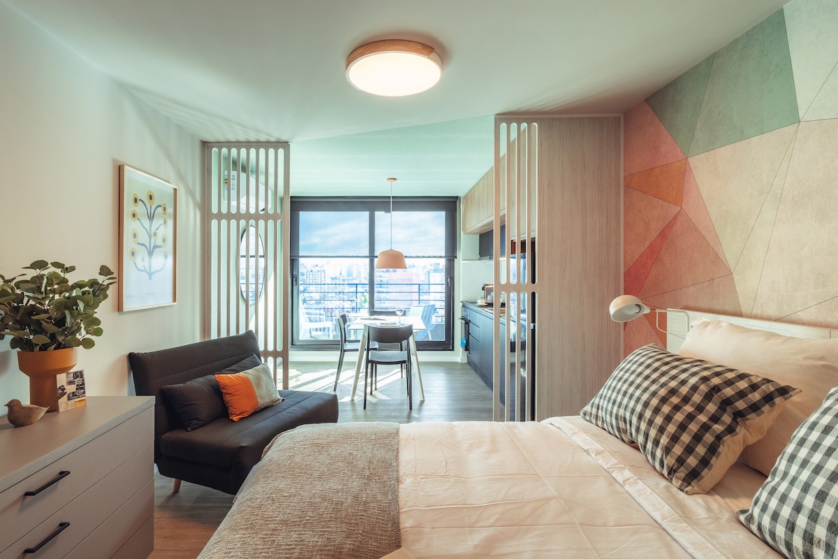 Desfrute do charme de Montevidéu neste moderno apartamento novo, perfeito para viajantes solitários, casais ou viagens de negócios. Está localizado no coração da cidade, perto de tudo e com uma bela vista urbana, design contemporâneo e todas as comodidades. O apartamento tem segurança 24 horas por dia, 7 dias por semana e sua localização é em uma das principais avenidas da cidade. Um lugar ideal, confortável e funcional, para uma estadia memorável em Montevidéu.