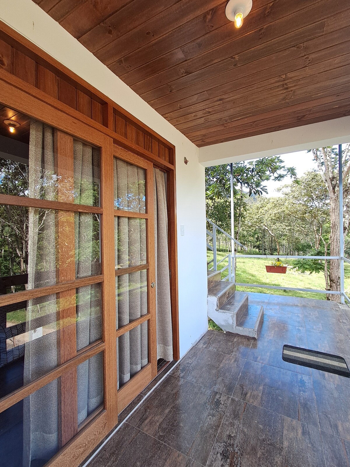 Disfruta de una experiencia con estilo en este alojamiento céntrico y a la vez en el bosque conectando con la paz de la naturaleza y a minutos de la plaza central. Vas ahorrar tiempo y combustible. • Baño con agua caliente • 2 habitaciones con 3 camas • 2 camas de 2 plazas y 1 cama de plaza y media • Terraza con vista al bosque y parrilla • wifi • Sala comedor • cocina equipada • 2 televisores también vas apreciar la variar de aves, ardillas y monitos que nos visitan de la naturaleza.