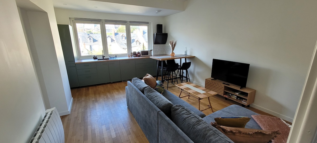 Bem-vindo a um apartamento encantador no coração de Blois! As suas vigas expostas e a vista desobstruída da catedral e do Loire tornam-no um lugar único no centro da cidade. Com três quartos modulares e uma grande sala de estar, é adequado para famílias, amigos ou estadias profissionais. Pode descobrir as encantadoras ruas pedonais, as lojas locais e os melhores restaurantes a pé, enquanto se hospeda num ambiente confortável e arrumado.