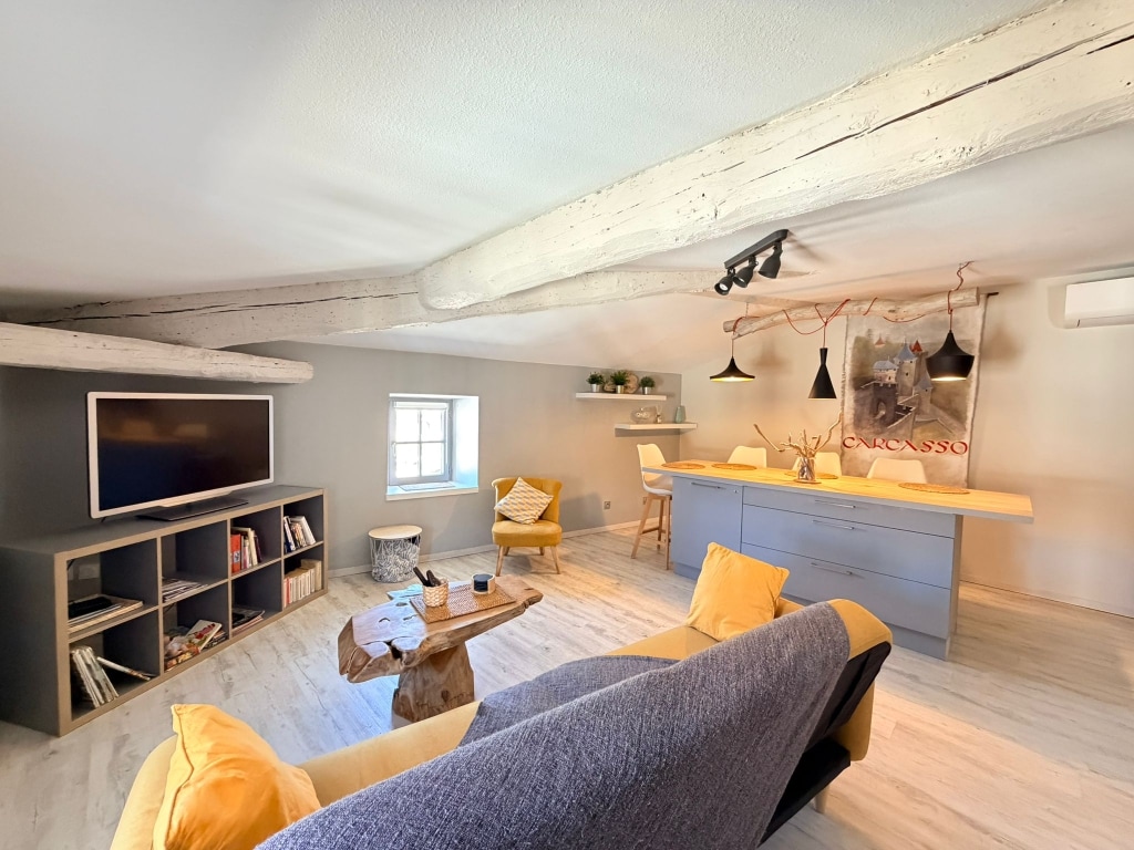 Bienvenue dans cet ancien affenage du XVIIe siècle entièrement reconverti en loft de caractère. Il offre de beaux volumes avec une grande pièce de vie lumineuse et une cuisine ouverte conviviale. Il dispose de 3 chambres, 2 salles de bain et d'un garage pour 2 véhicules. Idéalement situé au cœur de Carcassonne, à 50 m des Halles, restaurants et commerces, et à 15 minutes à pied de la Cité de Carcassonne. Maison entièrement climatisée.