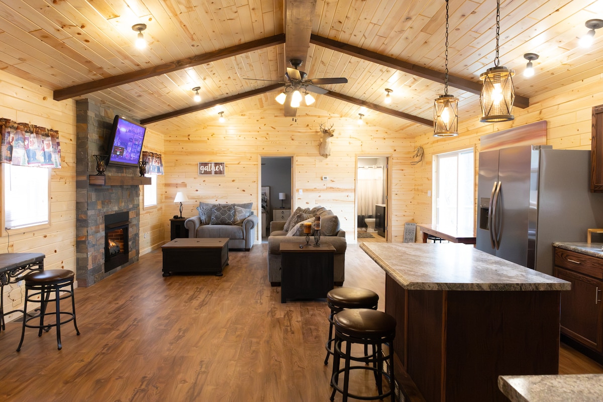 Sem taxas de limpeza! É como um conto de fadas! Este celeiro construído pelos Amish tem um acabamento bonito para ser o lugar perfeito para relaxar na sua viagem. O grande quintal privado possui uma banheira de hidromassagem, grelhador a propano, mesa de piquenique e anel de fogo. No interior, encontrará várias lareiras elétricas fáceis de usar, smart TV, Wi-Fi de alta velocidade, um espaço de trabalho dedicado, café-bar e uma cozinha totalmente abastecida, tudo maravilhosamente decorado. Acomoda 2 pessoas. Aceita animais de estimação.
