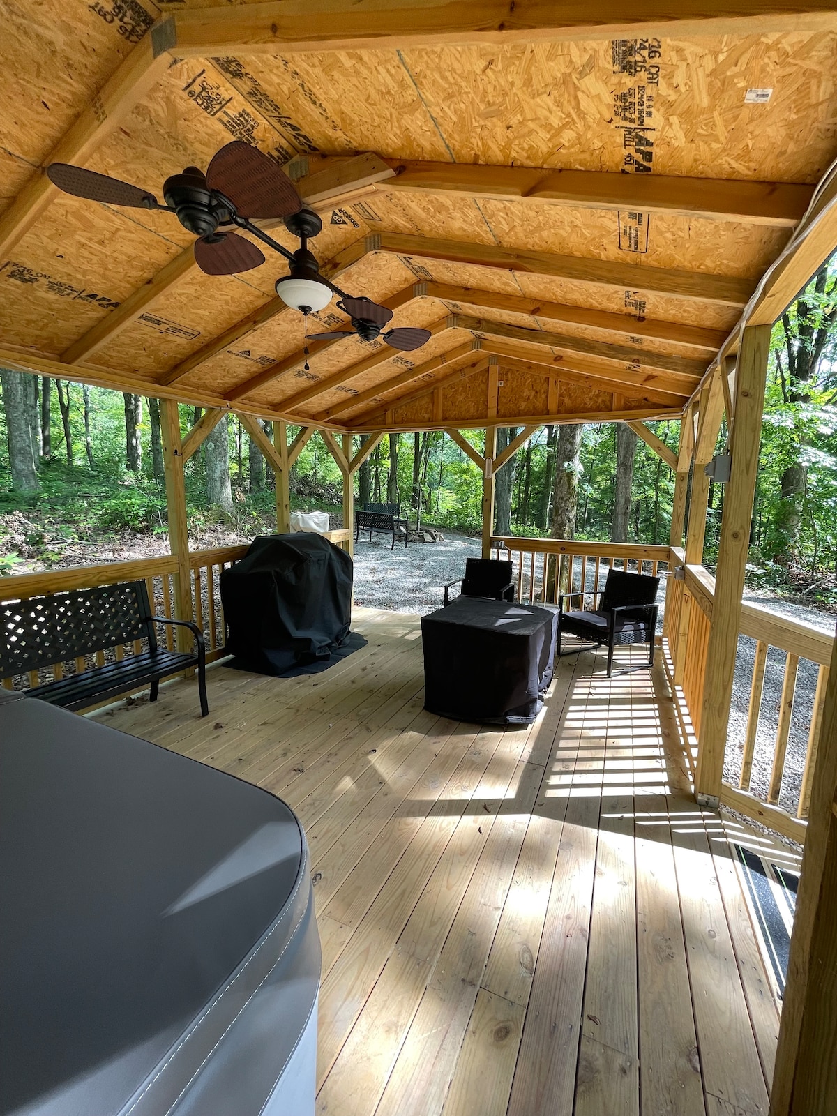Forget your worries in this spacious and serene space. Come enjoy this cabin centrally located on 90 acres, sitting back on a beautiful stocked pond! Updated in 2021, this is a beautiful place to come and enjoy nature, with all the amenities. You can have breakfast on an upstairs balcony while watching ducks and wild game around the pond. The unique feeling of being tucked away in the hemlock trees just really sets the mood at this unique cabin.