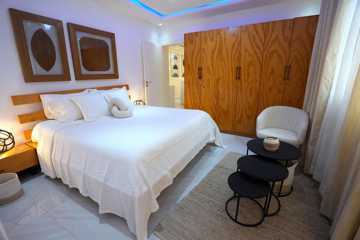 Bem-vindo ao seu elegante, luminoso e arejado retiro em Almadies. Um apartamento espaçoso e cheio de luz com 2 quartos e 3 casas de banho, concebido para o conforto, relaxamento e vida sem esforço. Inundada de luz natural e refrescada por brisas costeiras, esta casa moderna oferece uma atmosfera acolhedora, mas elevada, com obras de arte de inspiração africana, mobiliário contemporâneo e um convidativo espaço de estar aberto perfeito para relaxar após um dia a explorar Dakar. Esta casa oferece o equilíbrio perfeito entre estilo e funcionalidade.