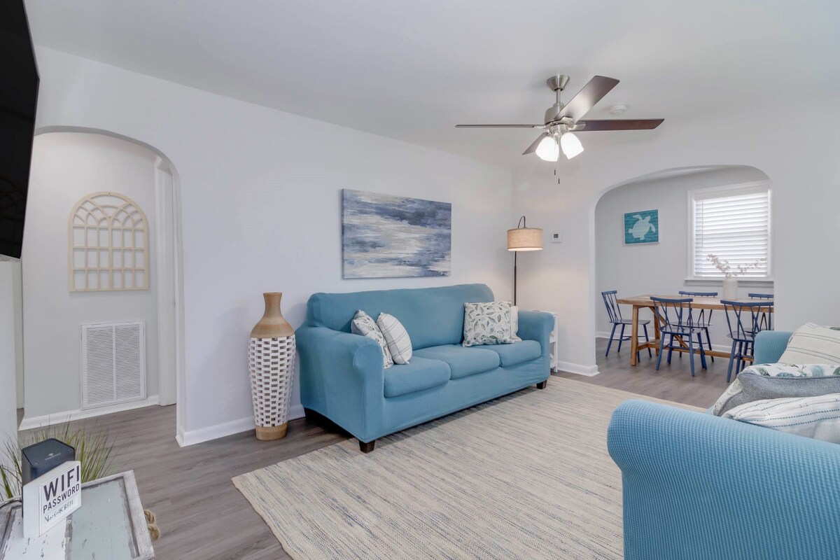 Esta casa de campo pitoresca com 2 quartos e 1 casa de banho é a escapadela familiar perfeita. Localizado a 2 quarteirões residenciais da praia. A praia é ótima para famílias com crianças. Esta unidade está ligada a um arrendamento de 1 quarto. O quintal também tem uma única unidade separada. Ideal para famílias pequenas. Há uma cerca no jardim da frente O quintal e a área de lavandaria são partilhados com a suíte de hóspedes ao lado. 2 Máximo de carro permitido Taxa de animal de estimação de $ 100 com pré-aprovação. ***Verão de 2026 check-in apenas à sexta-feira ****