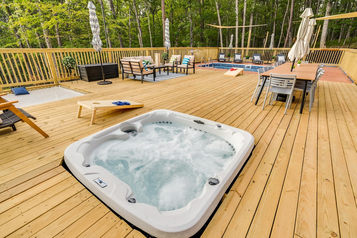 Cabana de luxo, PISCINA aquecida, HotTub, 9 camas, deck ENORME