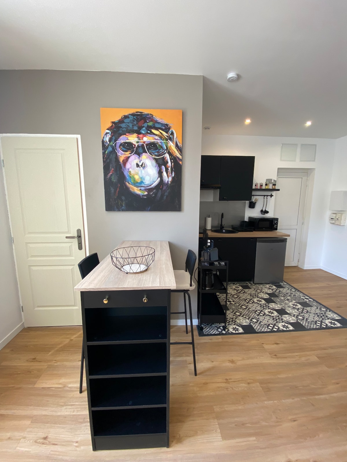 Estúdio aconchegante reformado, decoração zen. A dois passos do centro da cidade, você pode passear ao longo do Eure, que flui a 2 minutos a pé. Você entra por uma entrada espaçosa com armários, que dá para uma cozinha americana. No fundo, há um banheiro com chuveiro e vaso sanitário. Uma sala de 23 m² irá satisfazê-lo com sua grande cama de casal e TV. A calma do bairro vai seduzi-lo. Chá e café de cortesia, estamos ansiosos para recebê-lo.
