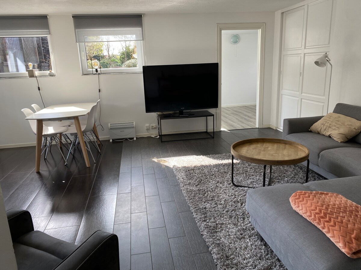 Fique num apartamento novo e moderno com uma localização central, a apenas 10 minutos a pé do centro da cidade. Demora 5 minutos a pé até ao Hospital Haugesund. O apartamento tem uma cozinha totalmente equipada, uma casa de banho com máquina de lavar e secar roupa, bem como um quarto com uma cama de casal de 180 cm. A sala de estar tem Wi-Fi, Altibox e TV. Estacionamento gratuito nas instalações.