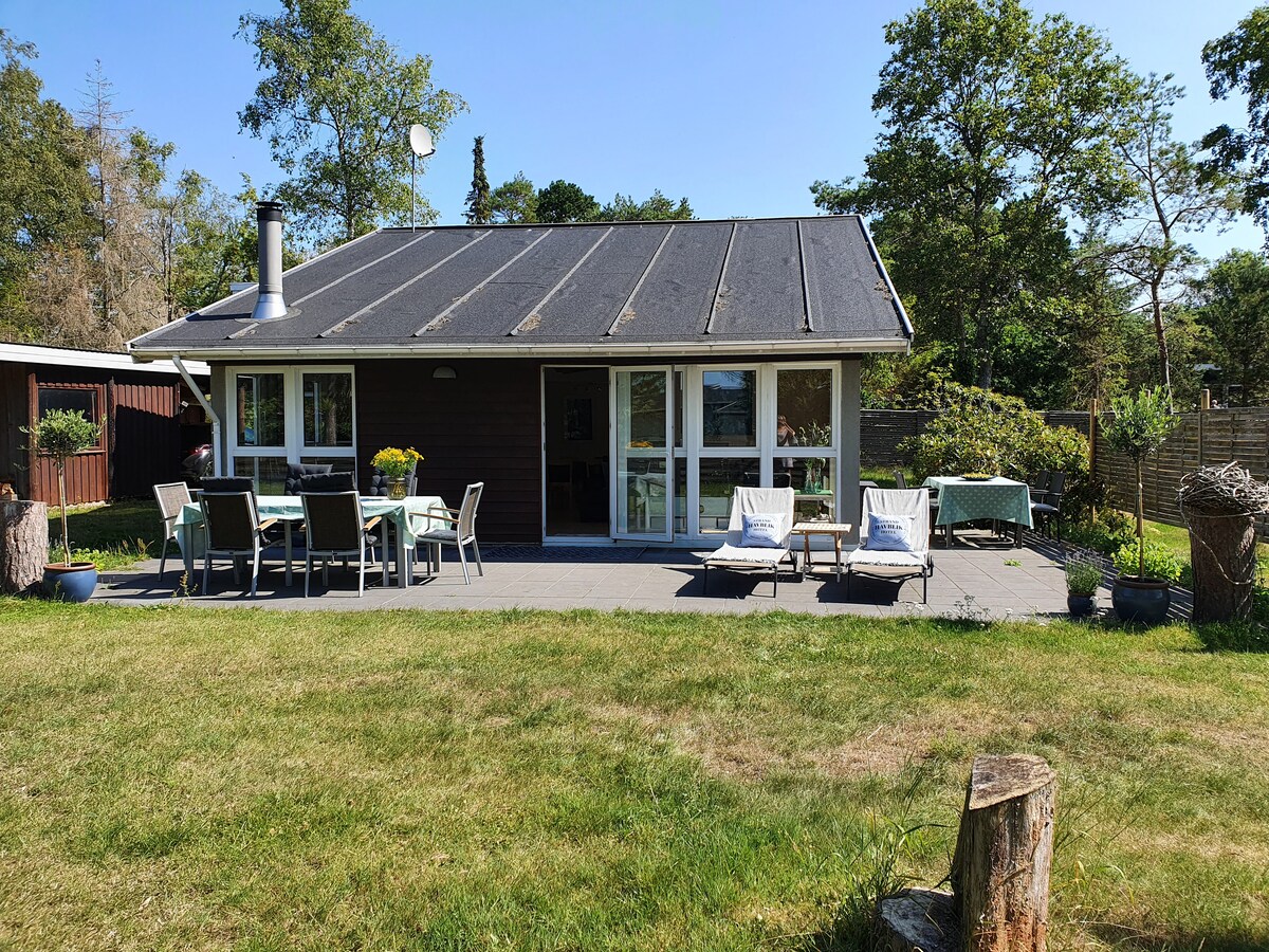 Casa de campo acolhedora de 138 m² com muito espaço para 4 adultos, bem como 4 crianças e até 2 bebés numa cama de viagem. A casa de veraneio foi renovada recentemente. Mín. 4 dias fora da época e 1 semana na época alta. Limpeza final DKK 850, - por estadia. É fornecida uma cesta de madeira com lenha, por favor traga a sua própria madeira. O consumo é pago de acordo com os contadores, eletricidade DKK 2,95 por kWh, água e drenagem DKK 89 por m3, o senhorio lê os contadores no check-in e no check-out e envia uma cobrança pelo consumo real através da Airbnb.