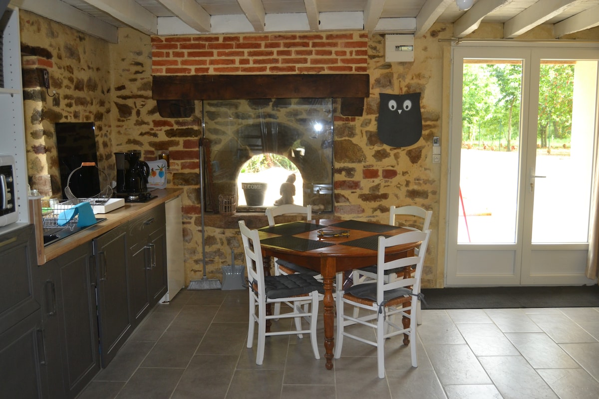 Em uma pequena aldeia rural, aproveite este pequeno casulo para recarregar as baterias. Você encontrará tudo o que precisa (máquina de lavar louça, máquina de lavar roupa) Com um spa ao ar livre de 6 lugares, incluindo um deitado, além de luminoterapia, tudo isso com água aquecida a 37 °C. A 13 minutos do centro histórico de Vitré e a meio caminho de Laval e Rennes Estou à sua disposição para qualquer pedido especial Seu animal de estimação é bem-vindo, por favor, registre-o ao fazer sua reserva.