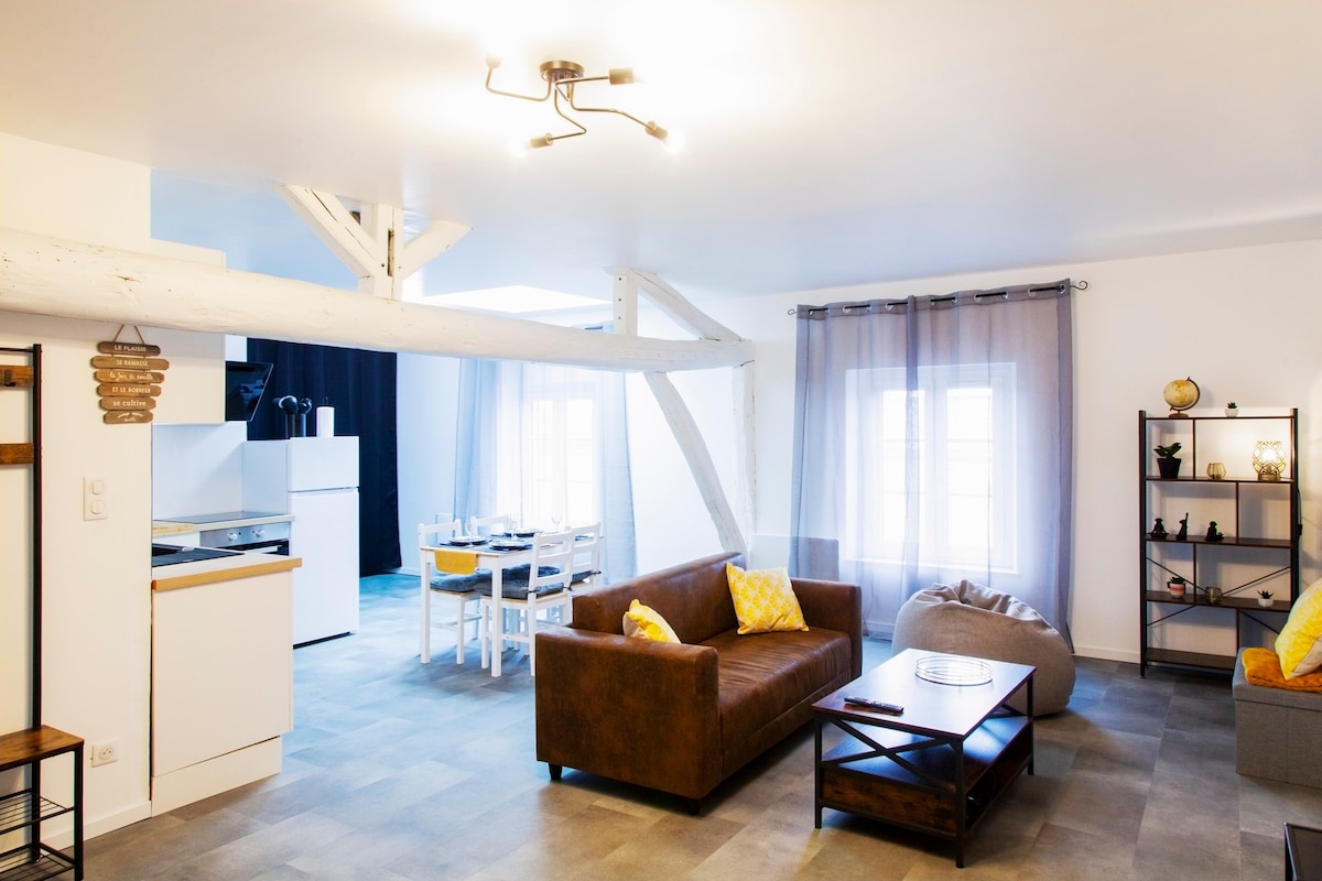 Apartamento luminoso, sem vista para a rua e pode acomodar até 4 pessoas. Um quarto confortável para noites tranquilas Uma sala de estar acolhedora com um sofá que se converte numa cama Uma cozinha totalmente equipada. Casa de banho e sanita separadas Adega (trancada) acessível mediante pedido Perto do centro da cidade, estará perto de todas as comodidades. As mais disponíveis para si: – Netflix/Prime Video/Canal+ - Roupa de cama - Roupa de cama de banho - Pequeno kit de chegada