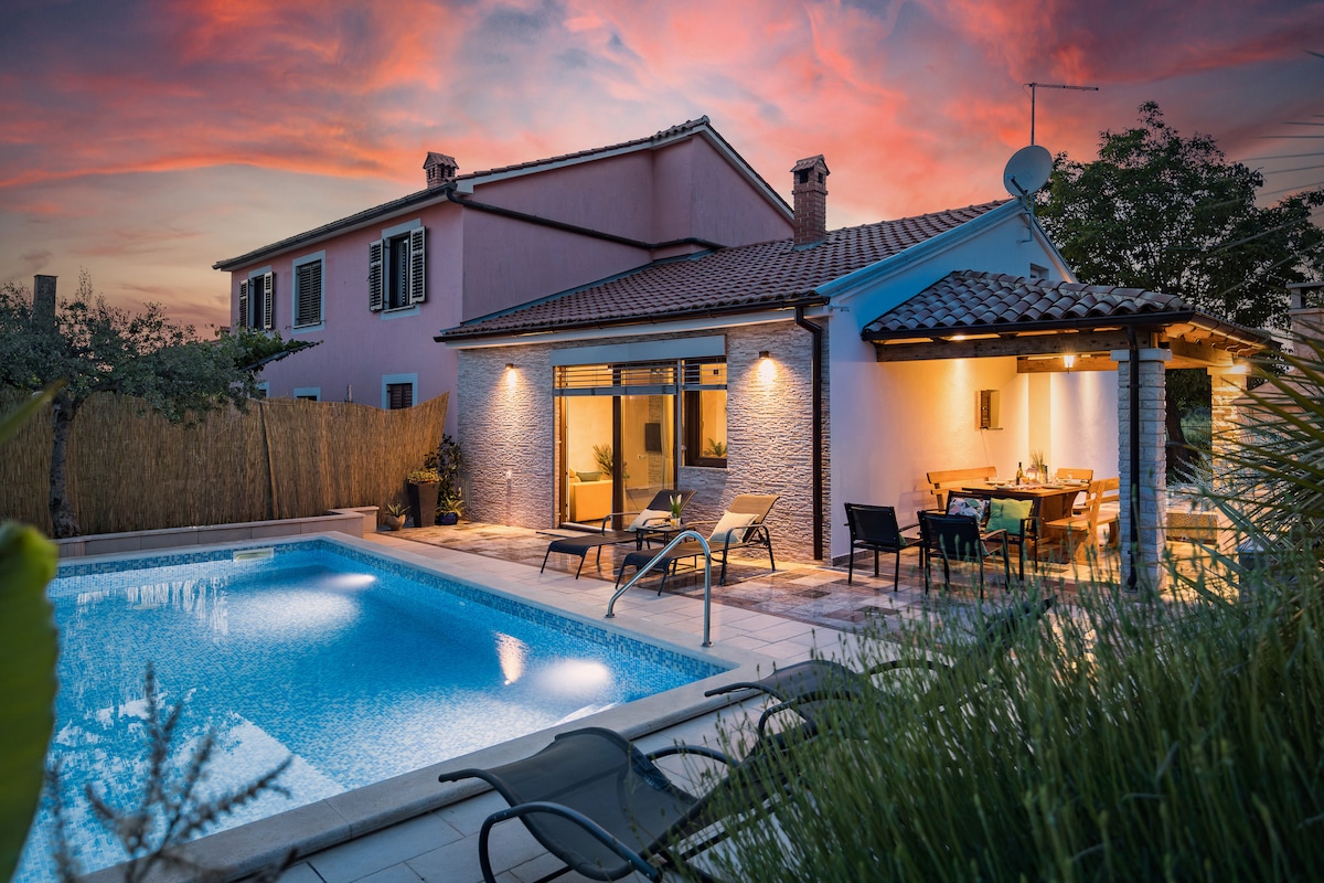 A Vila Onelia é uma casa de férias espaçosa que oferece o cenário perfeito para relaxar na Ístria. Com três quartos confortáveis, acomoda até oito hóspedes. Cada quarto garante conforto e privacidade, enquanto que o interior rústico e cuidadosamente concebido cria uma atmosfera acolhedora. Um dos destaques é o campo de ténis, situado a apenas 50 metros de distância, com 1 hora de utilização diária incluída (7 dias = 7 horas), ideal para os amantes do ténis.