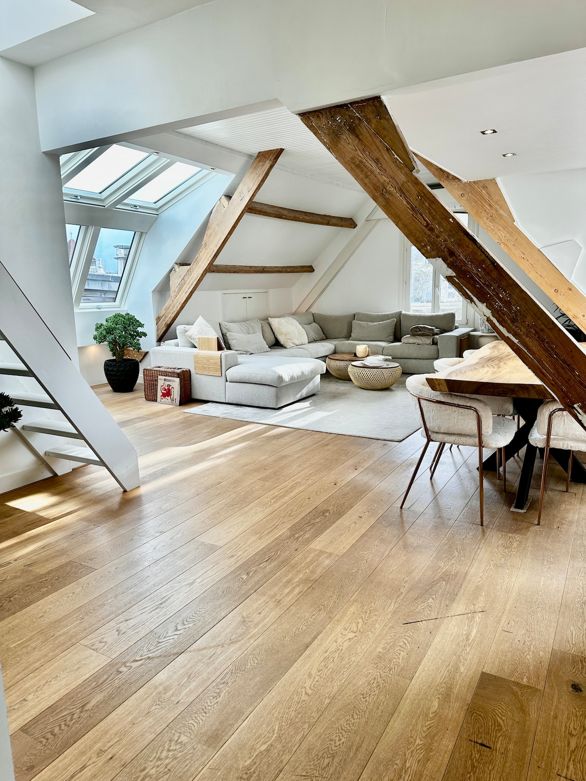 Apartamento elegante, único e tranquilo (74m2) com terraço no telhado + lareira com muita luz natural perto do Vondelpark! Oportunidade única de experimentar o melhor que Amesterdão tem para oferecer, como o Vondelpark, a área Oeste e Sul, e muitos restaurantes e bares ao virar da esquina. Mesmo ao lado da linha 1 da paragem de elétrico e do supermercado. No 4º andar (sem elevador) e sem barulho dos vizinhos por causa do último andar. Acesso a um terraço único no telhado, onde pode ver o sol nascer e pôr-se!